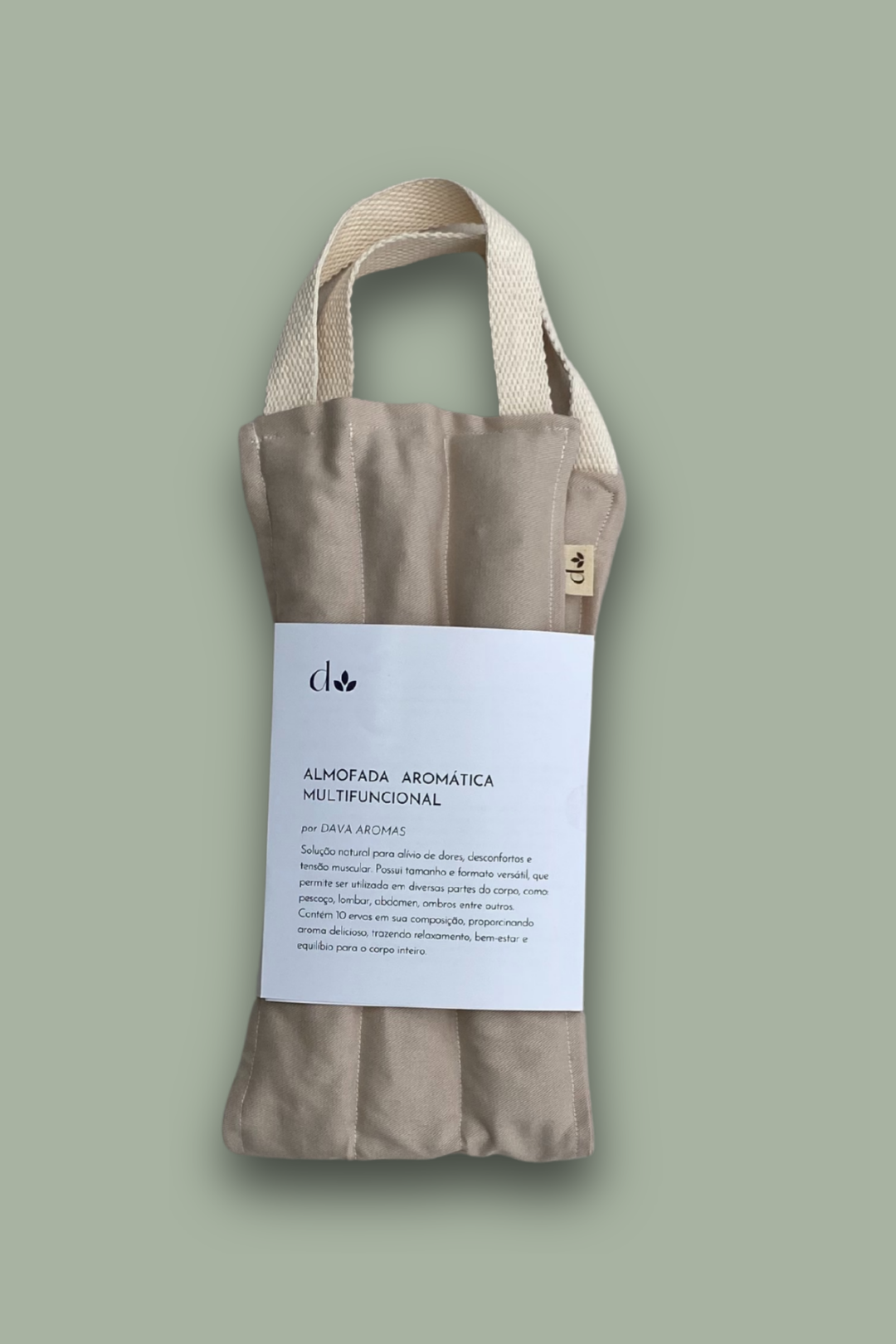A Almofada Aromática Multifuncional é uma solução natural para alívio de dores, desconfortos e tensão muscular. Possui um design versátil, que permite ser utilizada em diversas partes do corpo como: pescoço, lombar, abdomen, ombros entre outros. Feita artesanalmente com tecido premium diferenciado, 100% algodão que proporciona aroma prolongado das ervas, além de ser mais resistente à diferentes temperaturas. Possui 10 ervas diferentes em sua composição, que irão intensificar sua experiência de alívio de dores e relaxamento. Desfrute de um momento de tranquilidade, aliviando a tensão e revitalizando seus sentidos.